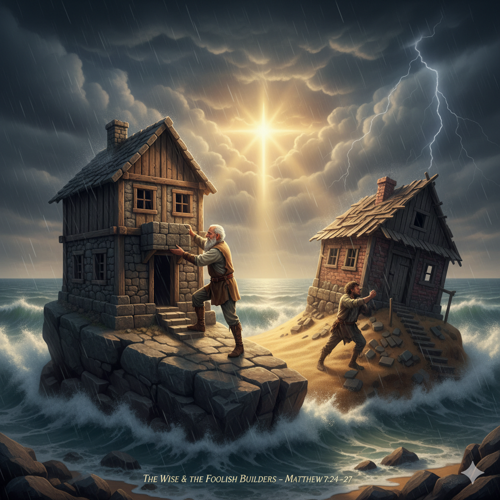 “Everyone who hears these words of Mine and puts them into practice is like a wise man who built his house on the rock. The rain came down, the streams rose, and the winds blew and beat against that house; yet it did not fall, because it had its foundation on the rock.